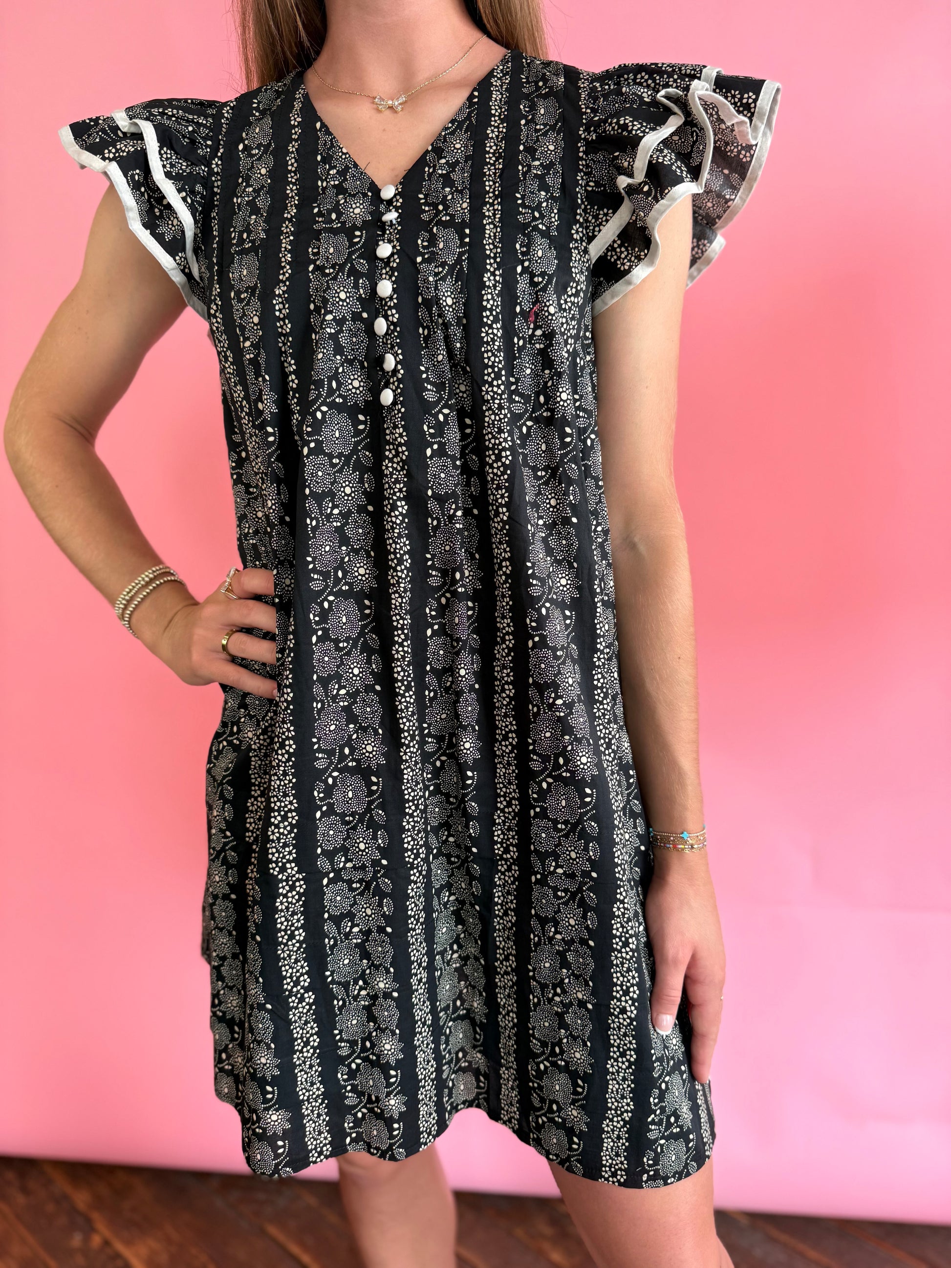 BLACK MINI FLORAL DRESS