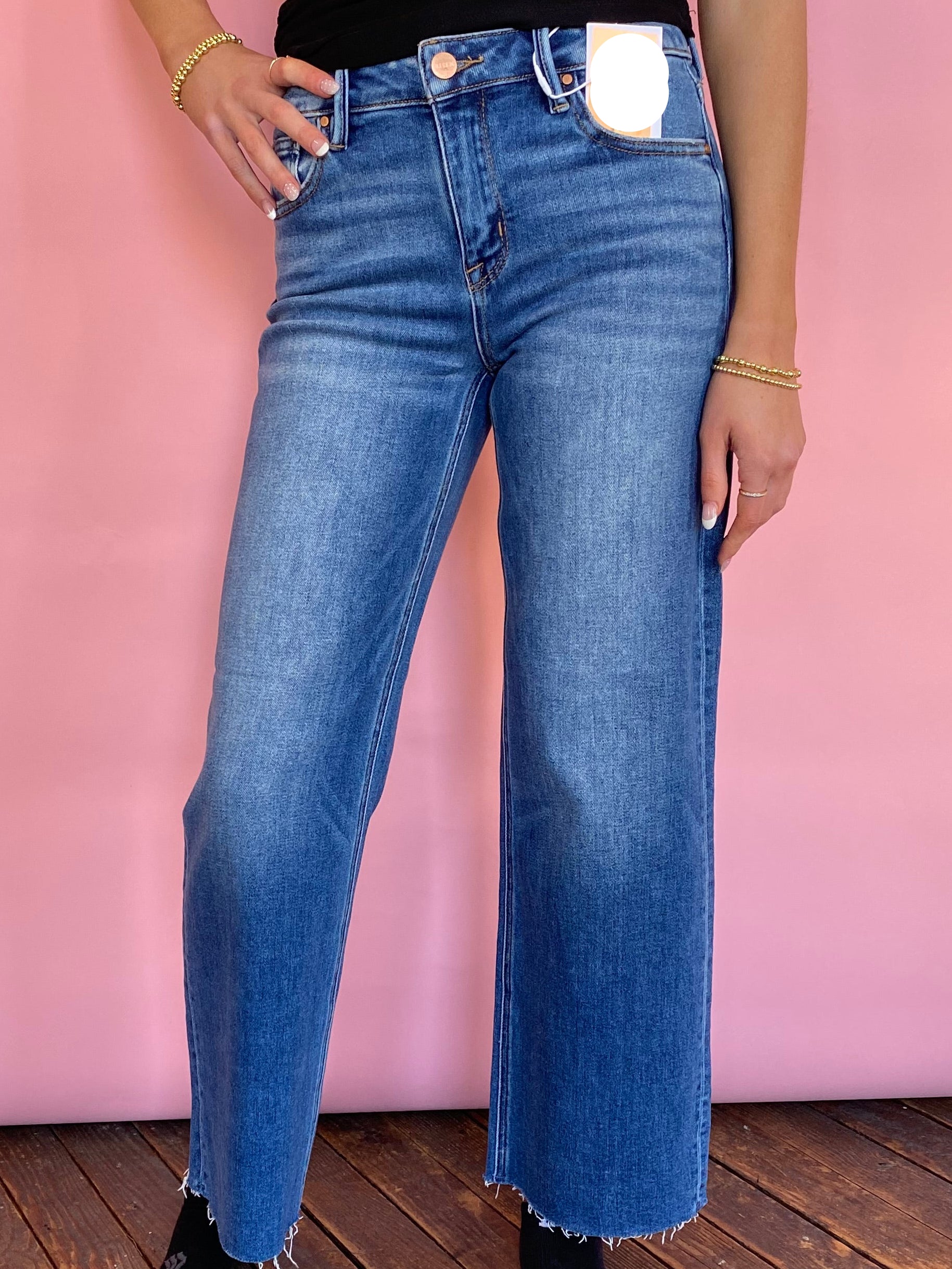 MID RISE, STRAIGHT LEG, CROPPED, DENIM, FOUR POCKET, NO HOLES, JEANS